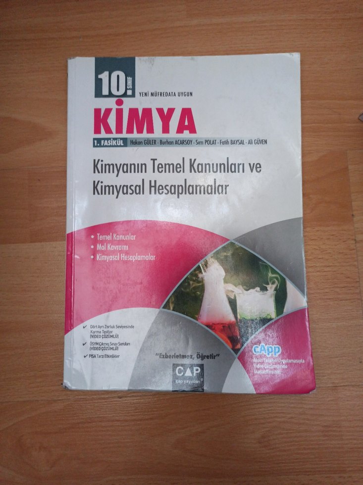 10. sınıf kimya kitabı, temel kanunlar, temel kavramlar ve kimyasal hesaplamalar konularını içerir.