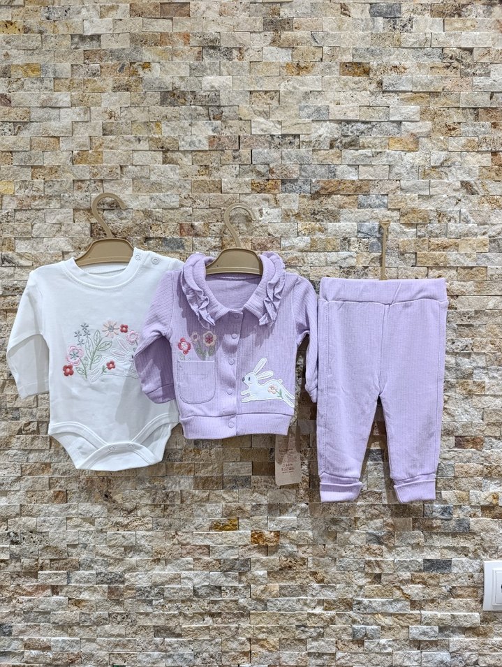 0-12 Ay Lila Tavşanlı 3lü Takim %100 Pamuk Yeni & Etiketli