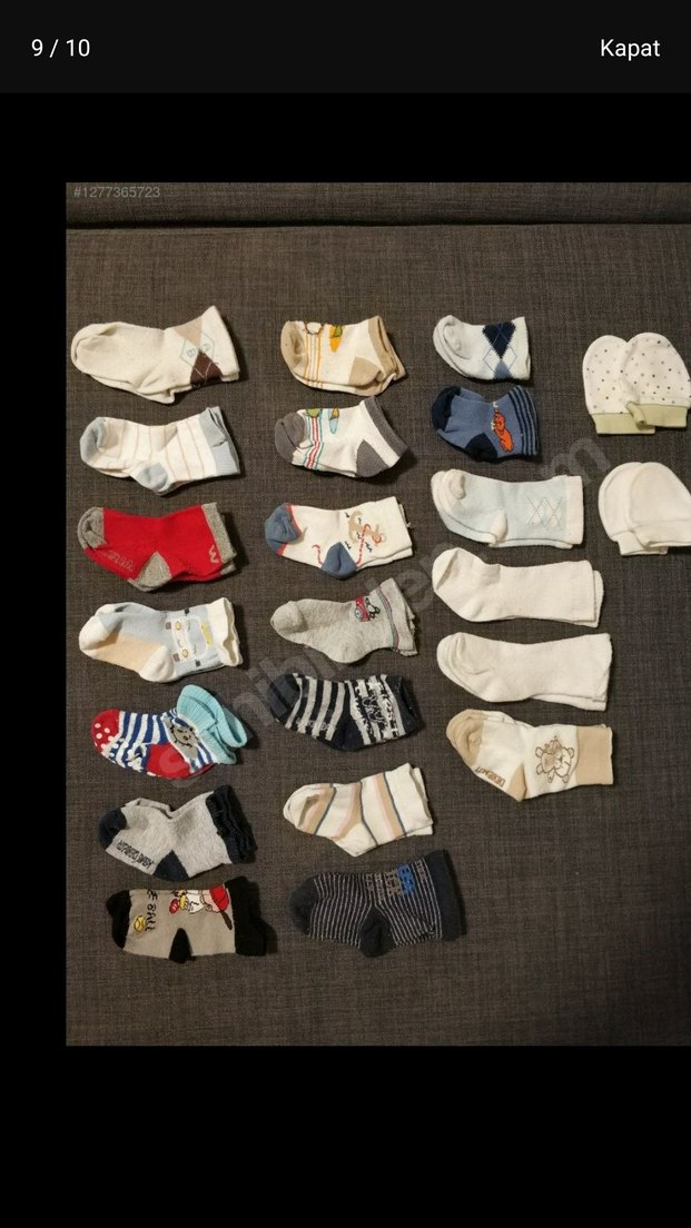 Çeşitli renk ve desenlerde, yumuşak kumaştan erkek çocuk çorap seti, içinde gri ve düz modeller bulunur. 0-3 ay.20 adet.bazilarinin bilekleri kesik.