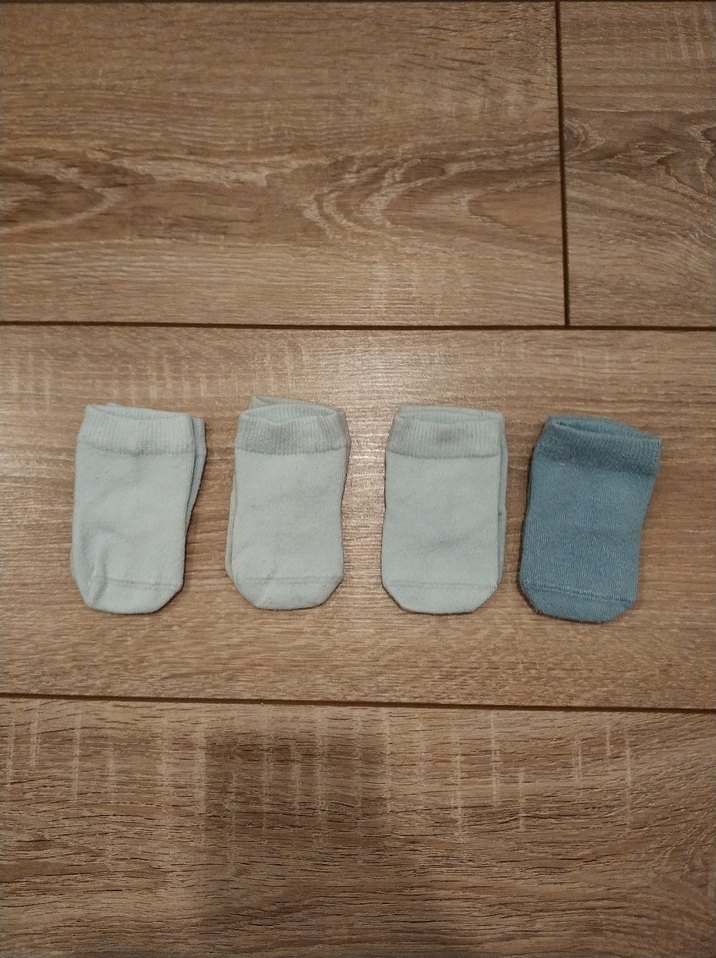 Farklı mavi tonlarında, yumuşak kumaştan yapılmış 4'lü erkek çocuk çorabı seti. ebebekten alındı.0-3 ay.