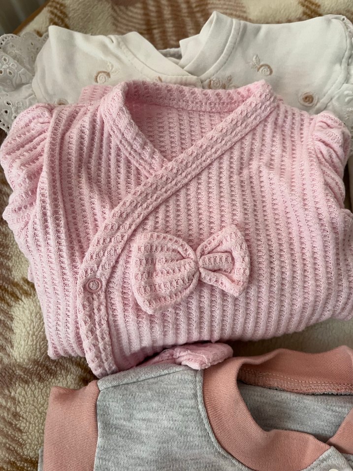 Pastel pembe renkte örgü, uzun kollu bebek kız takımı, fiyonk detaylıdır ve yumuşak dokuludur. Desensiz ve hassas ciltler için uygundur. Hepsi 0-3 aylık 4 aya kadar kullanılırsınız leke yoktur reflü yatağı içindedir