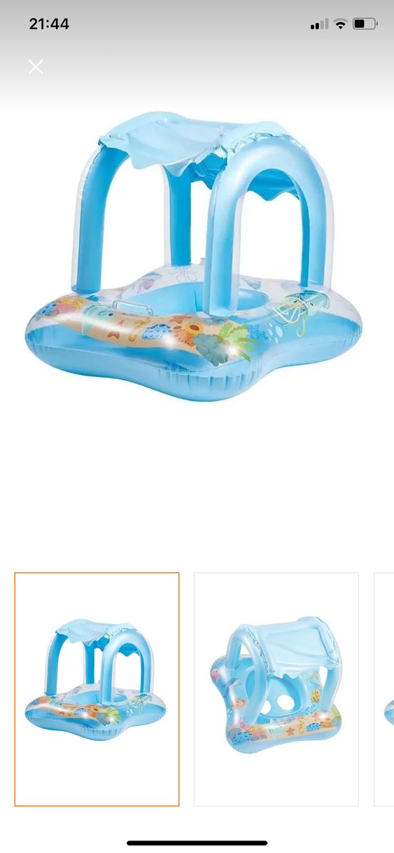 Şişme gölgelikli bebe flotörü bebek simidi. 1-2 kez kullanıldı hiçbir deformesi yoktur.