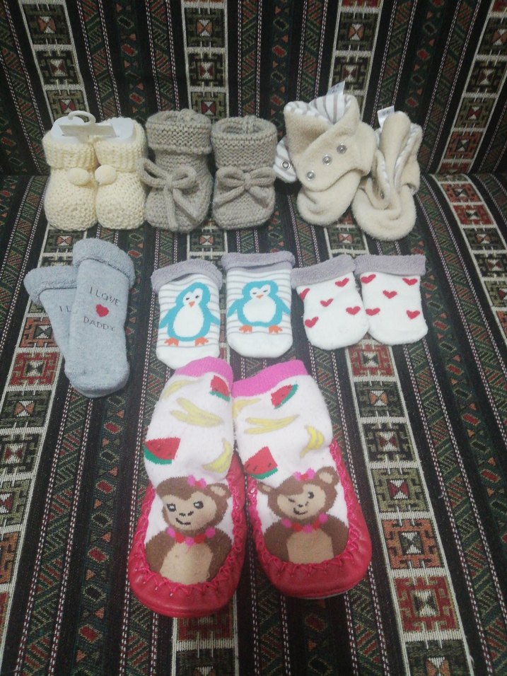 hepsinin fiyatıdır. temiz kullanılmıştır. 1 çorap ve patik hiç kullanılmamıştır. çoraplar Aziz Bebe, patikler Ella Bonna ve English Home, Hellobaby