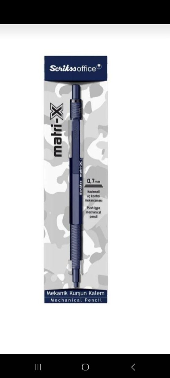 0,7 mm uçlu, itinalı yazım için itmeli mekanizmalı mavi-gri gövdeli mekanik kurşun kalem. ✏️