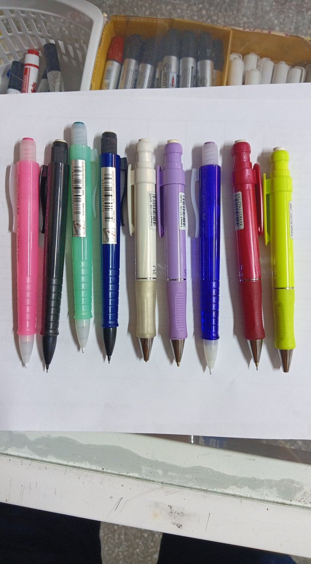Üst kısmında silgisi bulunan, çeşitli canlı renklerde mekanik uçlu