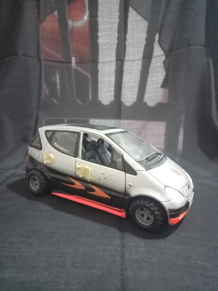 Ürün 1/18 ölçek Maisto üretimi Mercedes-Benz A-Classdır. Logoları, silecekleri, aksları, direksiyonu ve kapı kulpları eksiktir. Eksik kapı kulplarının yerine macun çekilmiştir. Yanında fotoğraftaki 4 adet jant lastik gönderilecektir. Eksikli bir üründür inceleyip alırsanız sevinirim.