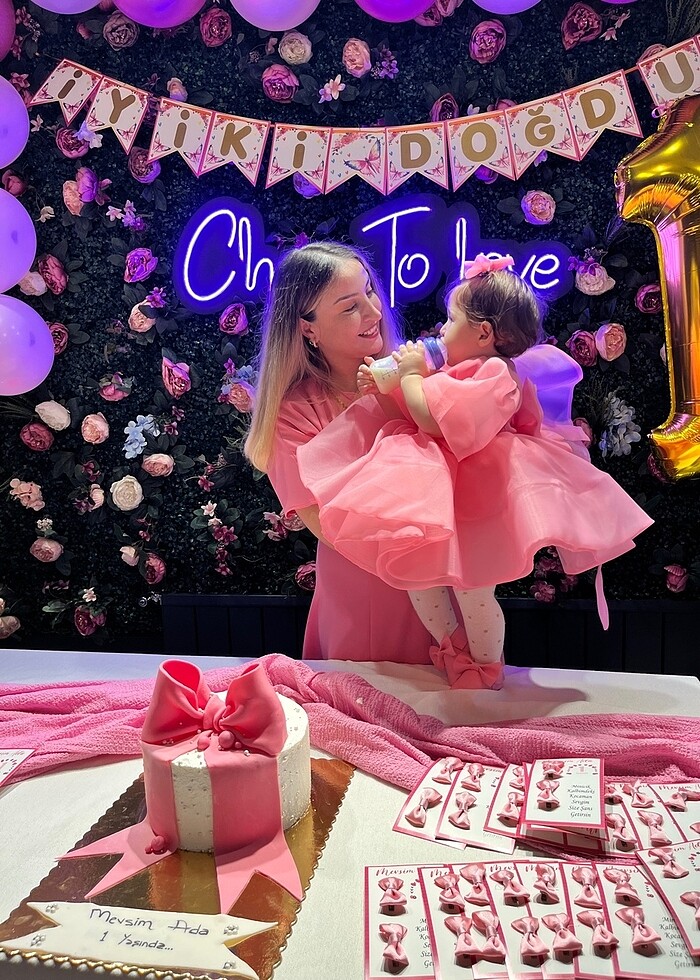 1-2 yaş uygun doğum günü elbisesi pembe
