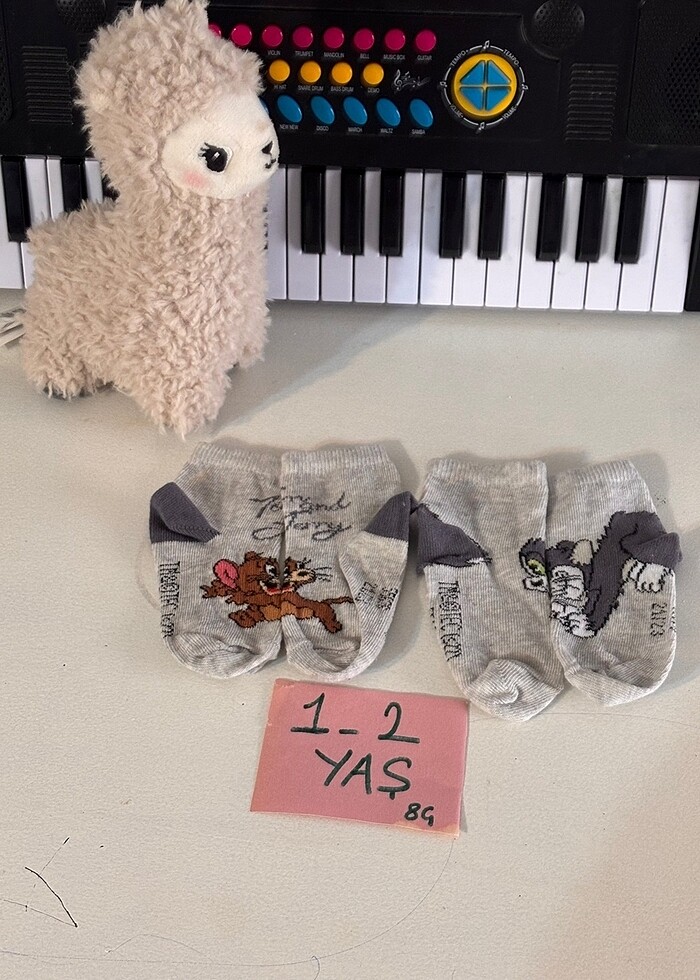 2 çift pamuklu çorap tom ve jerry kaçmaz set