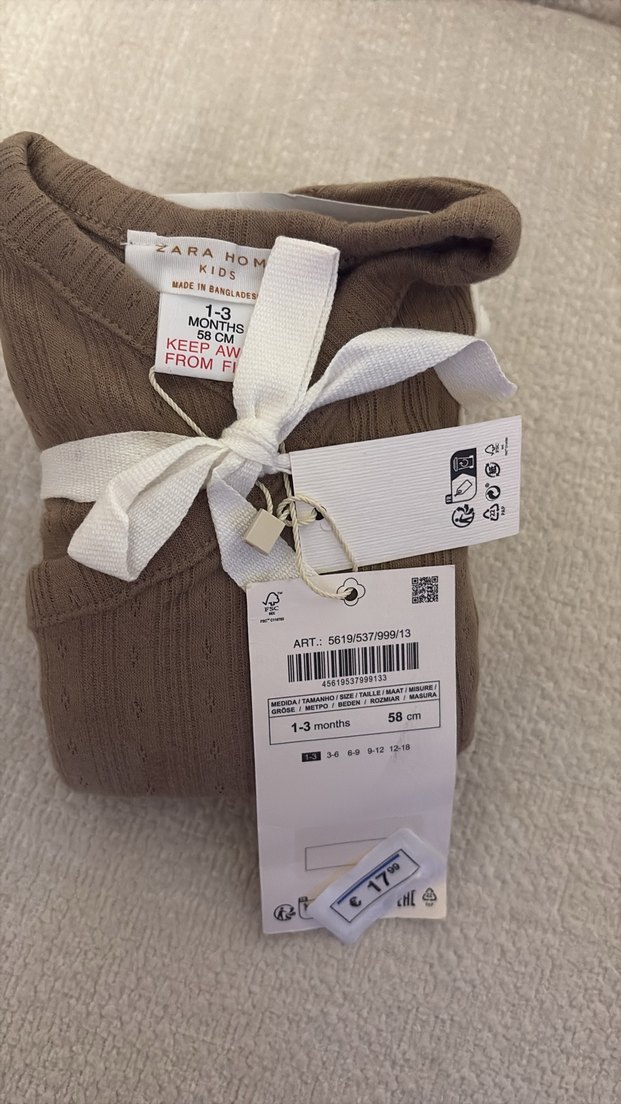 1-3 Ay zara etiketli beyaz ve bej renkli çıtçıtlı zıbın