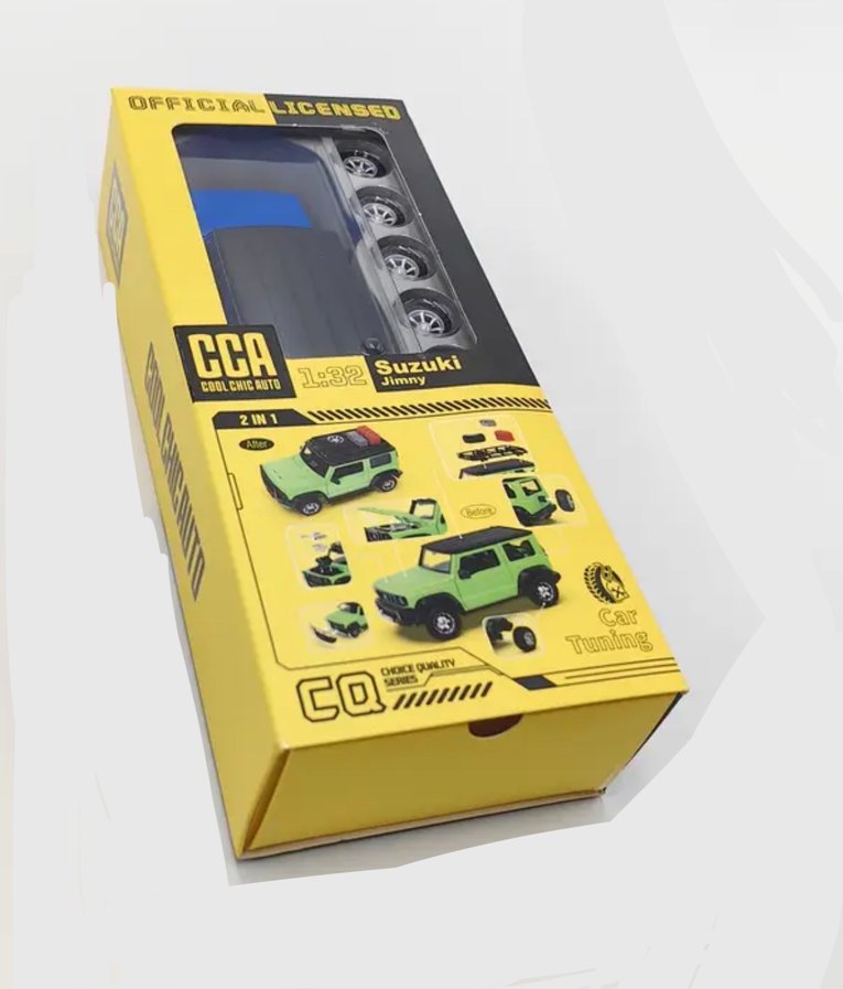 Ürün sıfır açılmamış kutusunda.1/32 boyutlarında Orjinal Lisanslı Model Oyuncak.CCA markalı ürün ,kendi kutusunda Orjinal Jimny araç ve aksesuar eklenebilir tüm parçaları ile.Güzel bir hediye şık kaliteli ürün