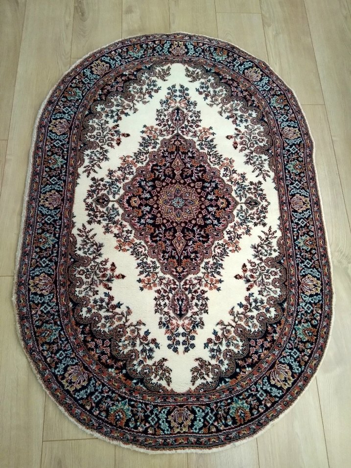 Kahverengi tonlarında klasik desenli oval halı.Çok temiz ve sorunsuz çok az oldukça temiz kullanılıp kaldırıldı,Detaylı çiçek motifleriyle odanıza şıklık katıyor ürün Boyu 1.45 cm Eni 1 metre kuru temizlemesi yapıldı öylece kullanabilirsiniz