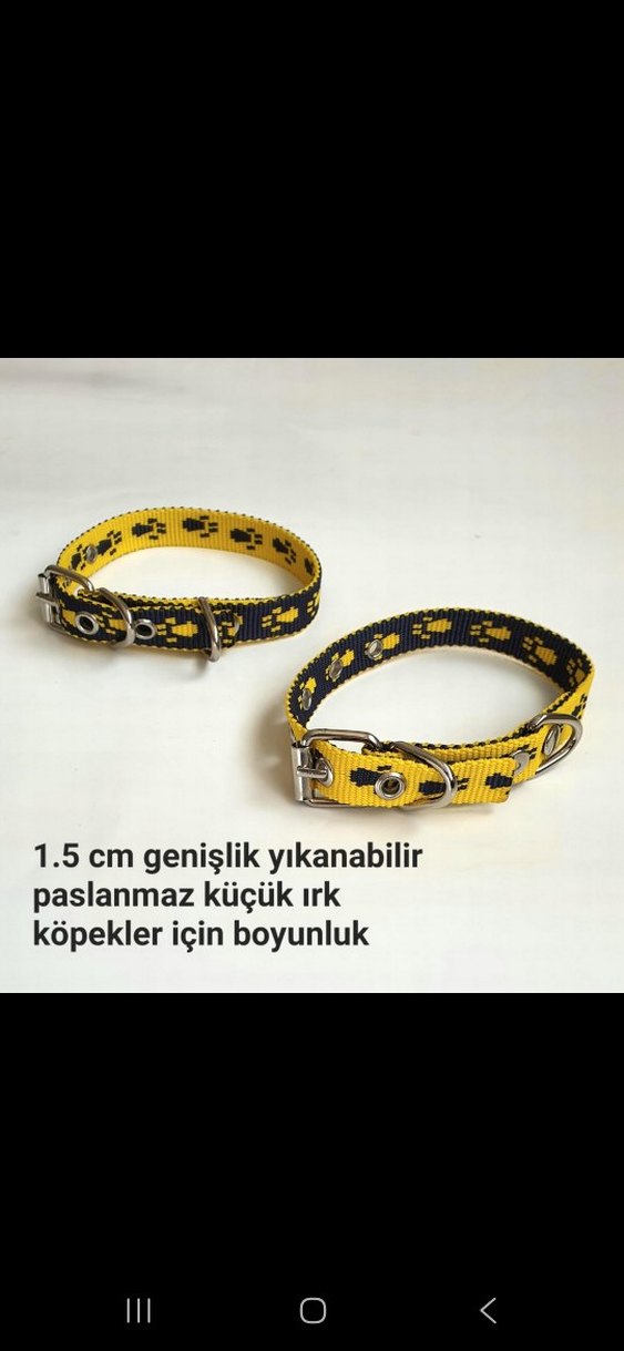 1.5 cm genişliğinde, yıkanabilir, paslanmaz metal detaylı küçük ırk köpekler için boyunluk.