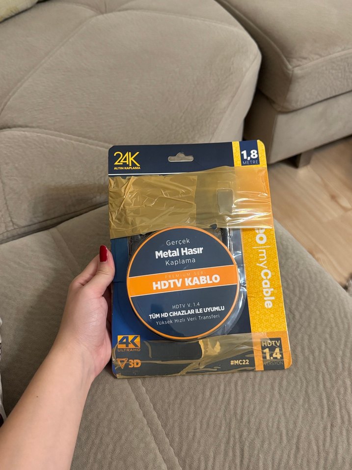 Gerçek metal hasır kaplamalı, 1.8 metre uzunluğunda altın renkli HDTV kablo. 4K ve 3D destekler, tüm HD cihazlarla uyumludur. Hiç kullanılmadı. Kabloya baktığım için paketi açmak zorunda kaldım. Fazlalık olduğundan dolayı satıştadır. #Detaylı bilgi isteyebilirsiniz. #teknosa #mediamarkt #preo #hdmikablo #kablo