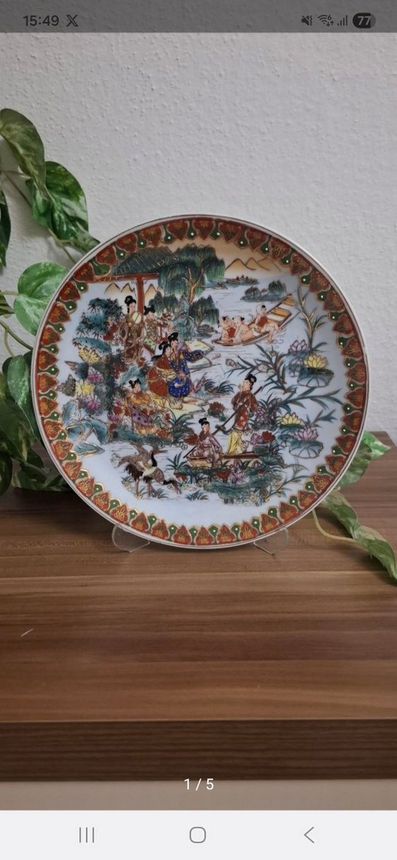 1 adet el boyama Japon kızı dekor tabak.Çok renkli ve detaylı sahnelerle süslenmiş, koyu renkli kenarı olan dekoratif tabak. Ev dekorasyonu için uygundur.