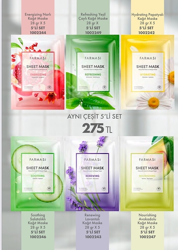 1 adet farmasi yüz maskesi Yeşilçaylı Renewing