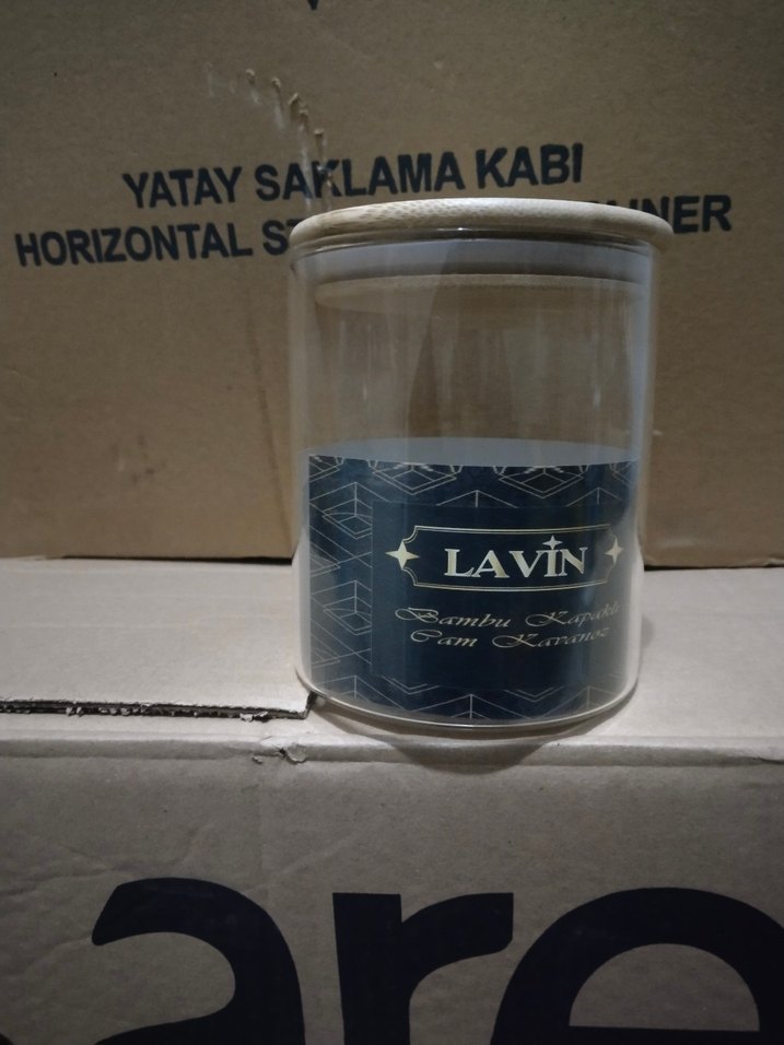 1 adet LAVİN Bambu Kapaklı Cam Saklama Kabı