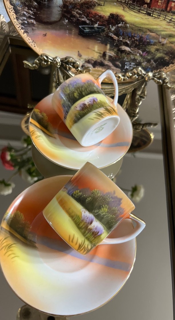 Pastel renklerde, doğa temalı desenlerle süslenmiş fincan ve tabak takımıdır. Her parça yumuşak ve zarif bir görünüm sunar.