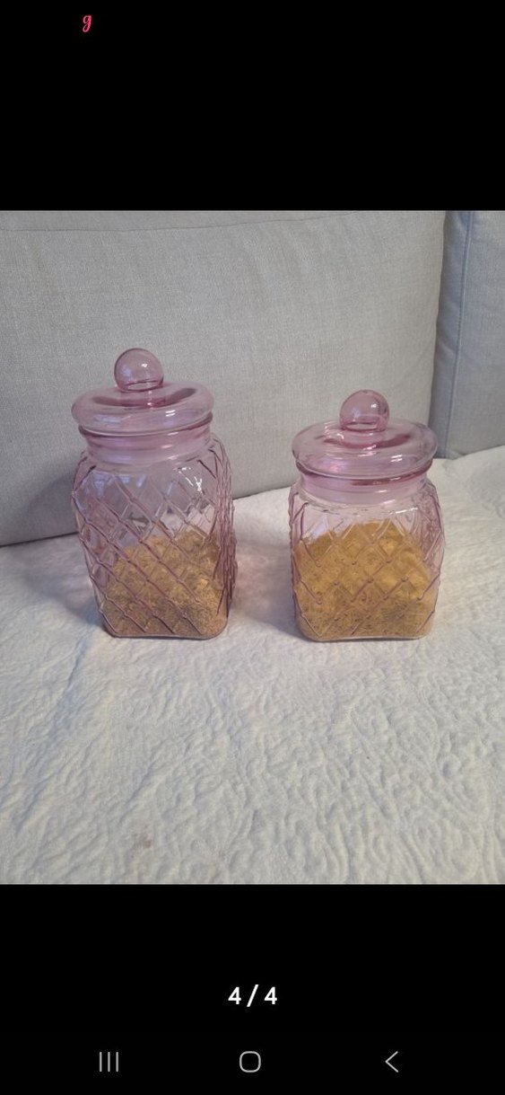 Pembe büyük cam kavanoz .ürünler tek tek alınmalıdır. toplu paket olan siparişler iptal edilir. gönderim yapılmaz. Bu üründen elimde 4 tane var. ölçüleri 15 x 15 x 32