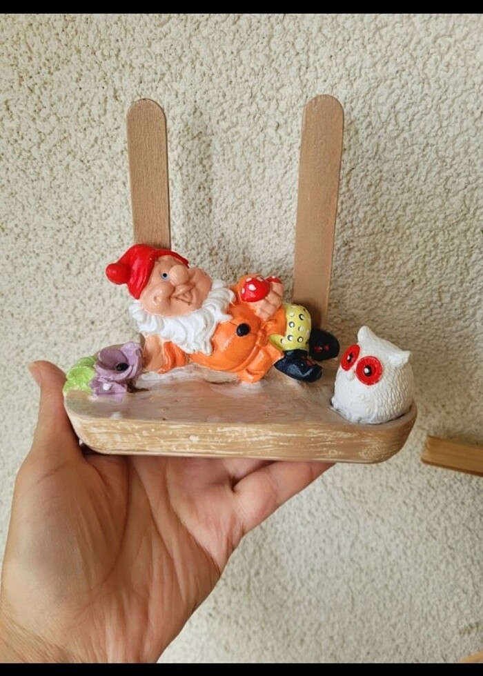 1 Adet Sevimli Cüce Biblo aynı zamanda resimlik. Minik mandallarla arkadaki çubuklara resimlerinizi takıp sergileyebilirsiniz. 2 adet minik mandal da gönderilecektir. İsterseniz çift taraflı bant ile de kullanabilirsiniz. Dilerseniz minik notlar yapıştırabilir, farklı bir hediye de yaratabilirsiniz. İstediğiniz ürünü mesajla bildiriniz. Ürün birleştirme yaptığınız takdirde önce mesaj atınız ki size özel yeni ilan açabileyim.