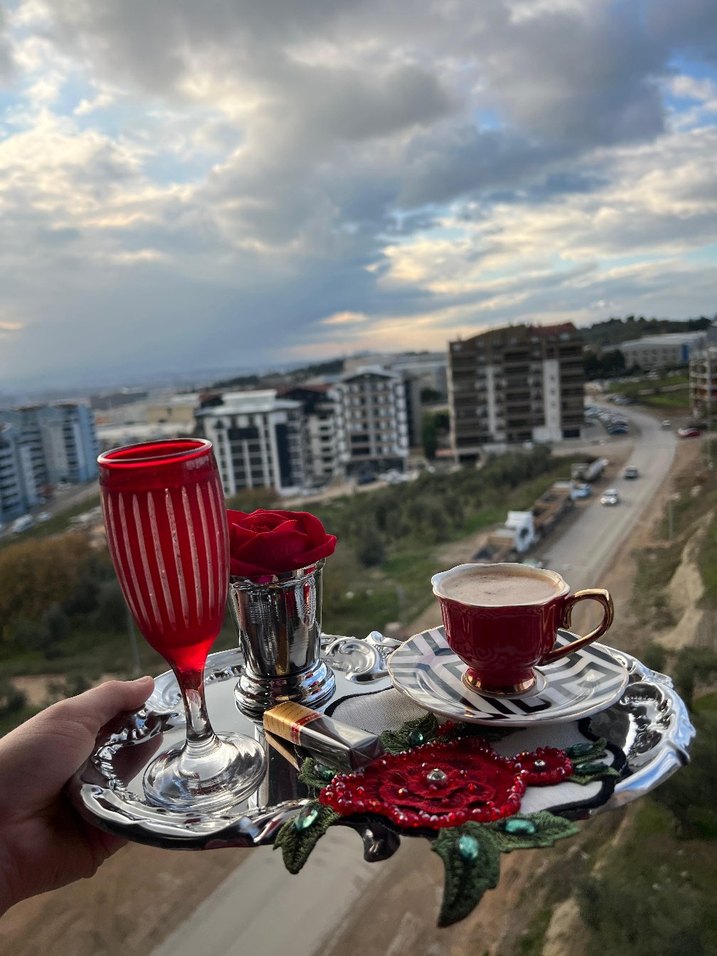 boncuk işlemeli kırmızı sunum peçetesi