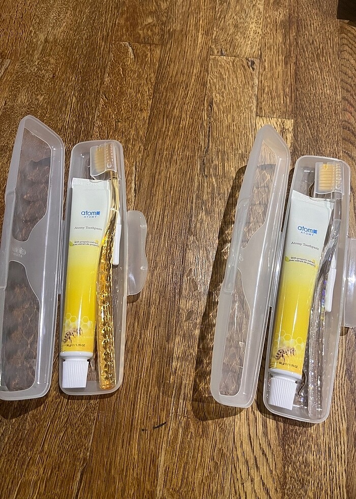 Atomy diş bakım seti 1 alana+1 bedava Altın tozlu diş fırçası Propolis ve yeşil çay içeren diş macunu Ara diş fırçası Özel tasarım koruma kutusu