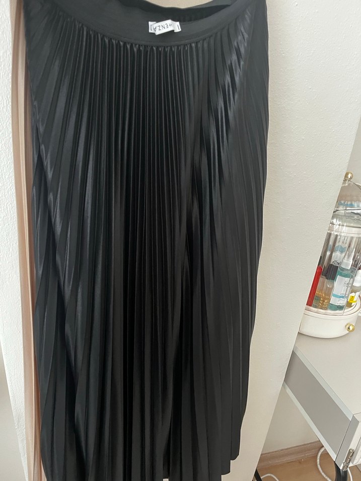 1 BEDEN Kadın Siyah Piliseli Uzun Etek henza marka