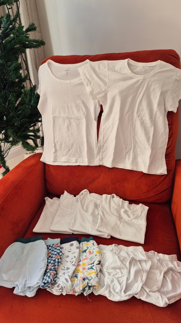 12 adet. Hepsi tertemiz. 4-7 yaş aralığı Hepsi pamuklu. Atletlerin çoğu ribana kumaş. Sadece en üste koyduğum açık mavi boxer lastik rengi kumaşa akmış ama belli belirsiz birşey. yine de yazmak istedim. Bu fiyata kaçmaz