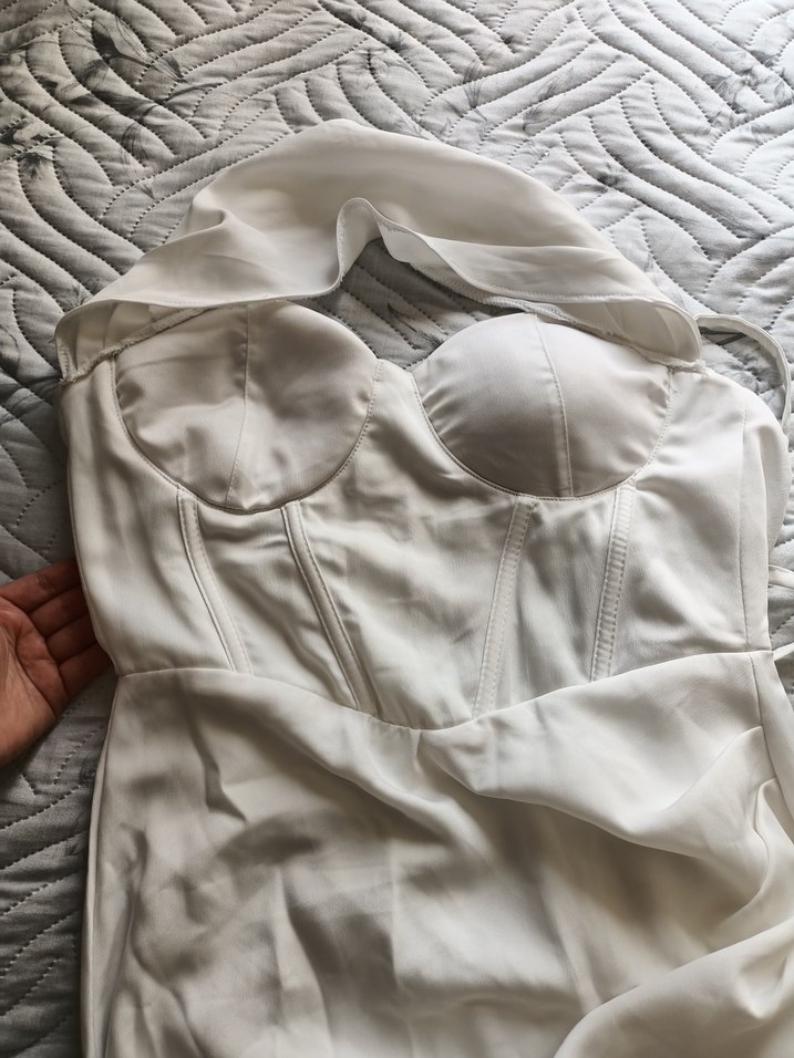 Beyaz, göğüs destekli, midi uzunlukta, desen içermeyen, vücuda oturan bir hemşirelik korsetidir. Rahat destek sağlar.
