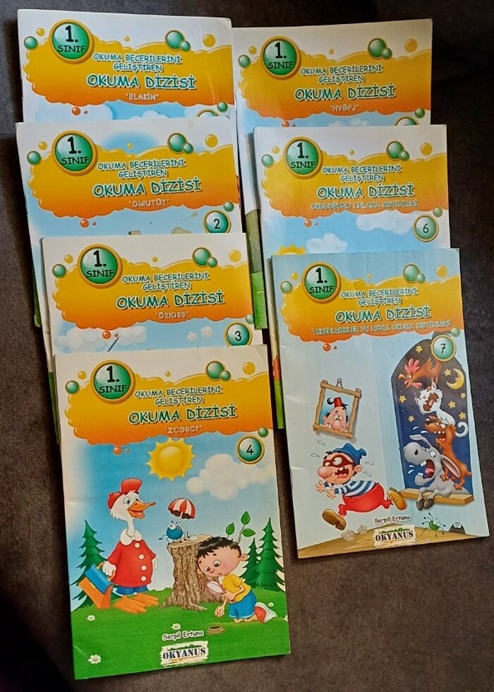 Okuma becerilerini geliştiren Okuma Dizisi.7 kitaptan oluşmaktadır. Keyifle okumalarına yardımcı olacak şekilde renkli ve resimli olarak hazırlanmıştır.Okulda öğrenilen harf sırasına uygundur.Okyanus yayınları.