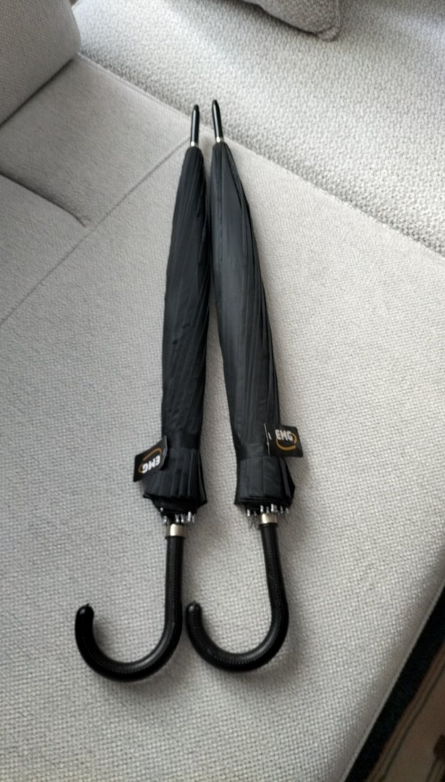 Siyah şemsiye, minimalist goth tarzında. Kavisli sap ve güvenli kapanış için cırt cırtlı bant içerir. Temel ve sade görünümler için uygun. ☂️