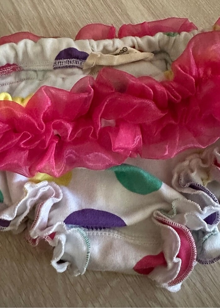 Bezli bebeklerin plajda giyebileceği çok şirin bir alt. Kızıma hediye gelmişti ancak küçülmüştü hiç giydiremedim. Bu sebeple etiketleri üzerindedir.