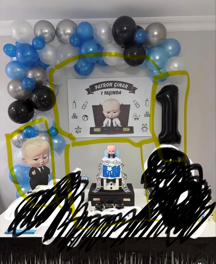 Maket pasta 1 no balon Masadaki figür Afiş branda isim kısmı kesılebilir