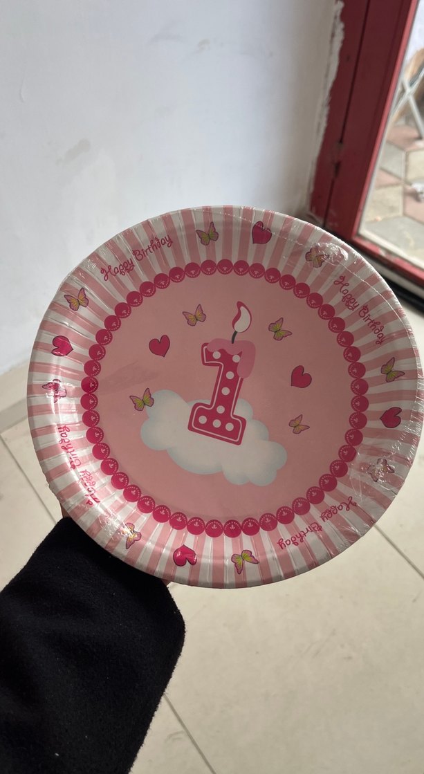 1 Yaş Pembe Doğum Günü Karton Tabak