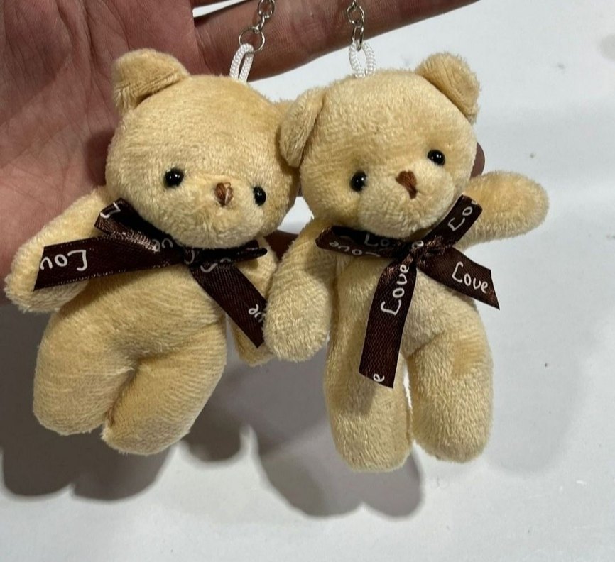 Yumuşak kahverengi peluş ayıcık anahtarlıklar, renkli detaylara ve kahverengi kurdelada "Love" yazısına sahiptir. Sevimli ve küçük boyutta. 5 Adet fiyatıdır 12 cm Papyonlu Anahtarlı Ayıcık