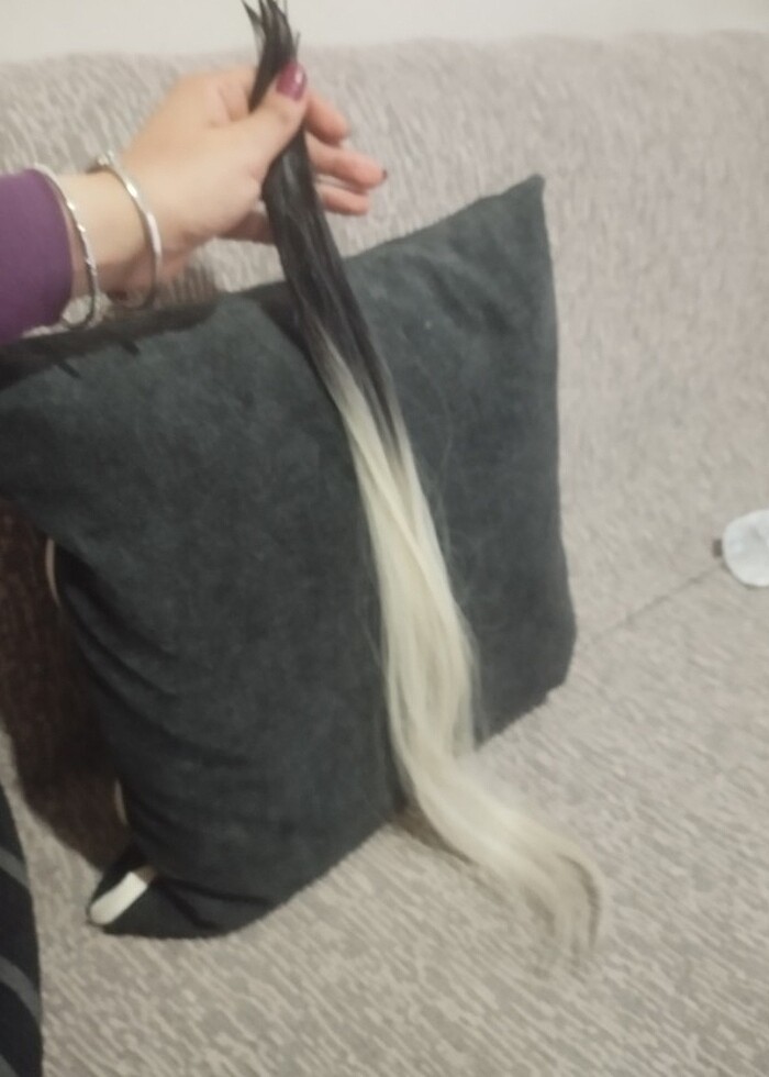 gerçeğe en yakın ipeksi mat 10 adet balyaj ve saç aralarına ışıltı olarak kullanabilcek platin sarısı dipleri siyah 80 cm mikro kaynak yıkanabilir düzleştirici her işlem yapılır uçları kullanıma hazır halde tak kullan saçlar daha fazlası için ilan artırın