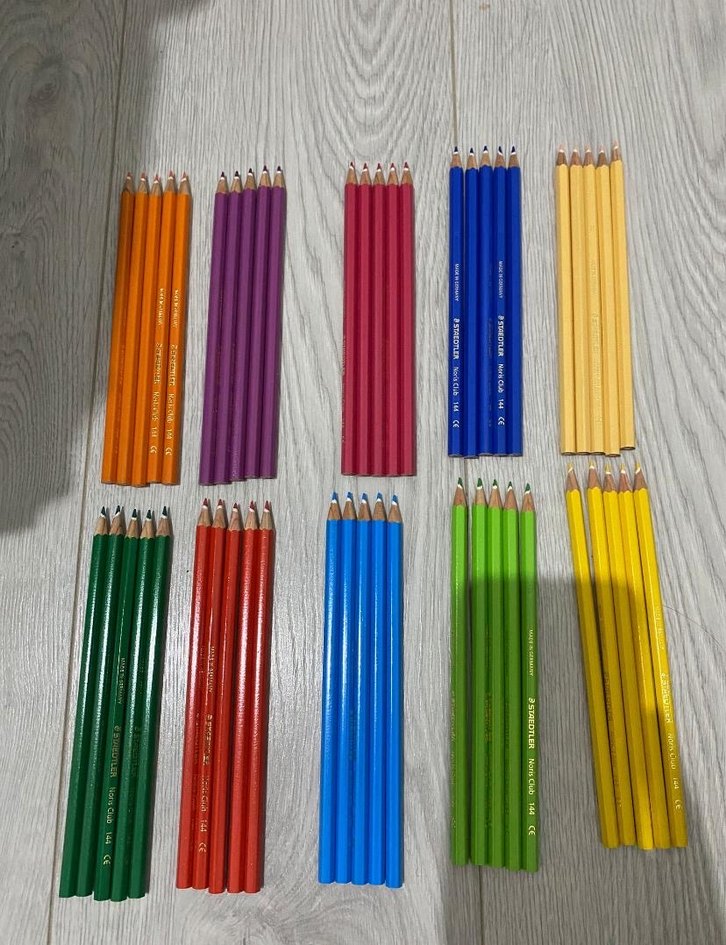 10 farklı canlı renkte kurşun kalem seti. Çizim ve yazma için uygundur. Her renk parlak ve belirgindir. Hiç kullanılmamış sıfır kalemler. Stok bulunur.