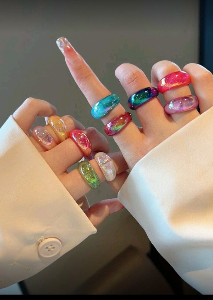 10'lu Parlak Çok Renkli Bohem Kadın Yüzük Seti