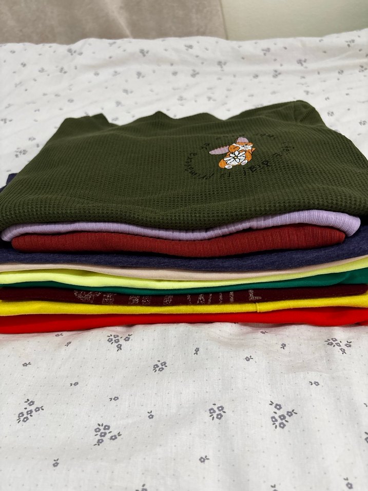 S bedene uygundur. Resimde görüldükleri gibidir kusurları yoktur. Birkaç kez giyilmiştir temizdir. Bazıları normal uzunlukta bazıları crop modeldir.