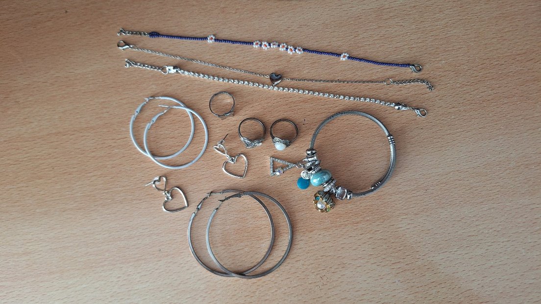 Çelik değiller. Büyük halka küpe hariç hiçbirinde kararma yok Su yolu bileklik ve kalpli bileklik hic kullanılmadı. Bileği ince olanlar halhal olarak kullanabilirler