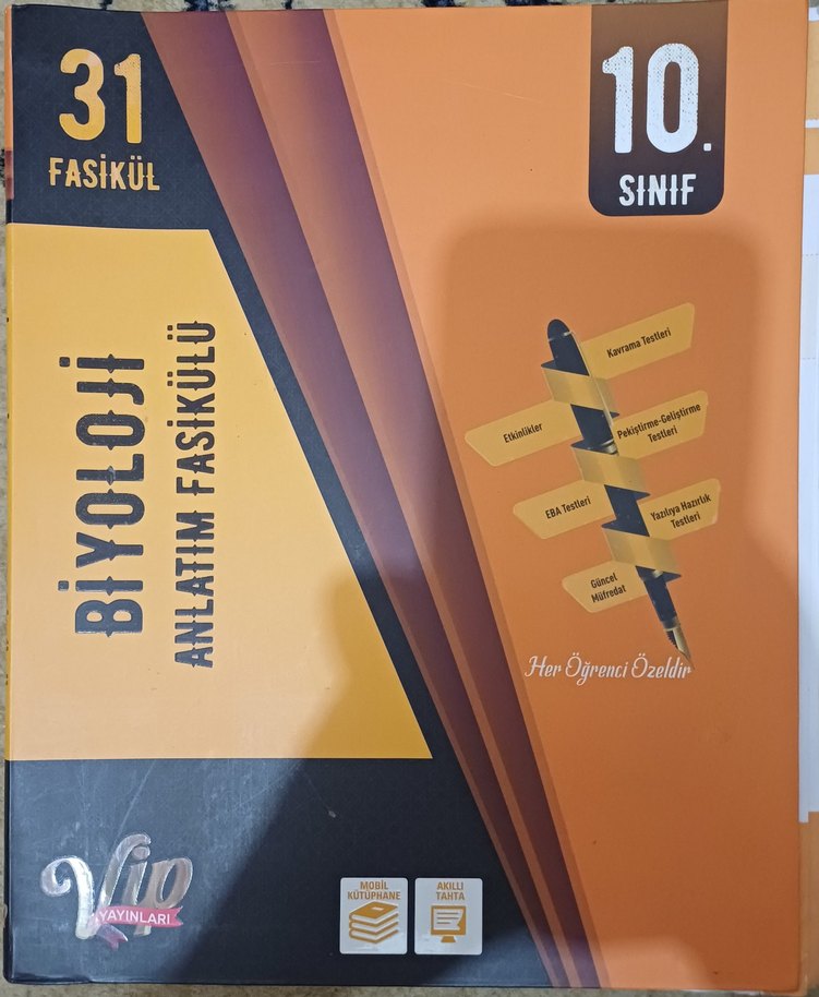 10. sınıf biyoloji konularını içeren 31 fasiküllük anlatım ve test kitabı.