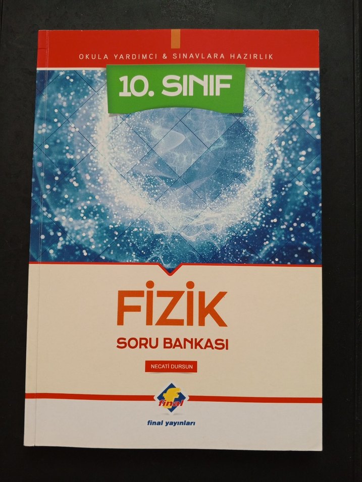 10. sınıf için okul ve sınavlara hazırlık destekli fizik soru bankası, Final Yayınları tarafından hazırlanmıştır. test 5' e kadar bütün soruları çözdüm. 6. testten de ilk soruyu çözdüm. geri kalan testler temiz