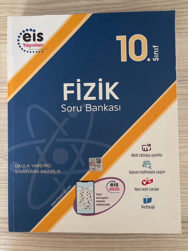 10. sınıf Fizik soru bankası, güncel müfredata uygun, perforajlı sayfalar ve akıllı tahta uyumlu özellikler sunar.