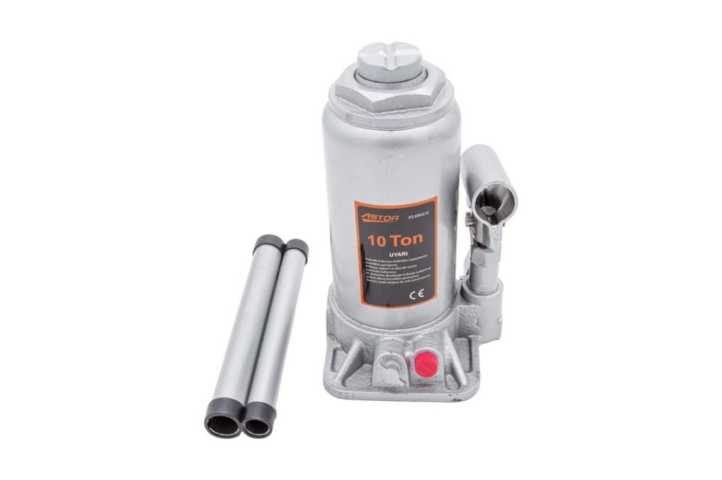 Astor marka gri hidrolik kriko, 10 ton kaldırma kapasitesine sahiptir. İki ayrılabilir sapı ile kolay kullanım sağlar. CE sertifikalıdır. ⚙️