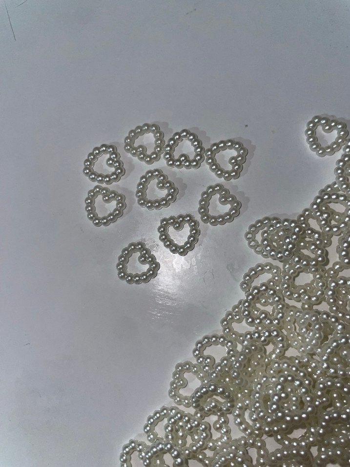 Küçük kalp şeklinde, beyaz tırnak süsleri, detaylı tırnak tasarımları için uygundur.