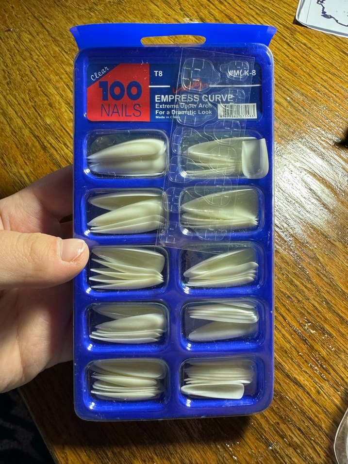 Hiç kullanılmadı. Elimde toplam 2 paket var. Ayrı ayrı ya da tek tek satın alabilirsiniz. Dramatik görünüm için kavisli tasarıma sahip 100 beyaz uzun takma tırnak seti.