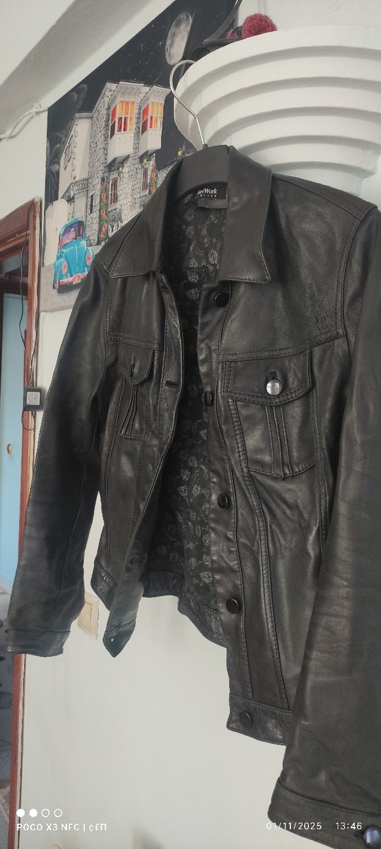 Düğmeli siyah biker deri ceket, yakalı ve fitted kesimdir. Askılı kollu, normal boyda ve günlük kullanıma uygun rock punk havası taşır. Taklit ,çakma deri görünümlü.urunlere boşuna para verip kanser olmayın. 100 yıllardır deri her zaman tercih edilen giyimdir. Bedeni artık hiçbir olmadığı için veriyorum zamanında bir kamyon verdik. al güle güle giy eserinin çok altında vermiyorum M.bedendir artık kime kismetse