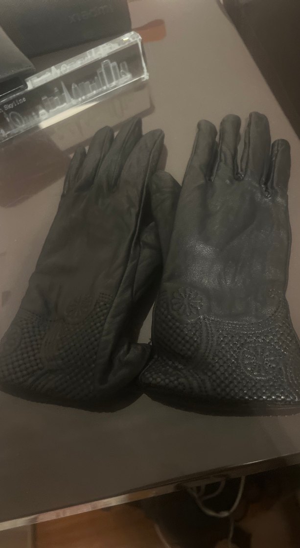 %100 siyah deri biker eldivenler, gotik tarzda ve koyu renkte. İç astarı yün Eski moda bir görünüm sunar.