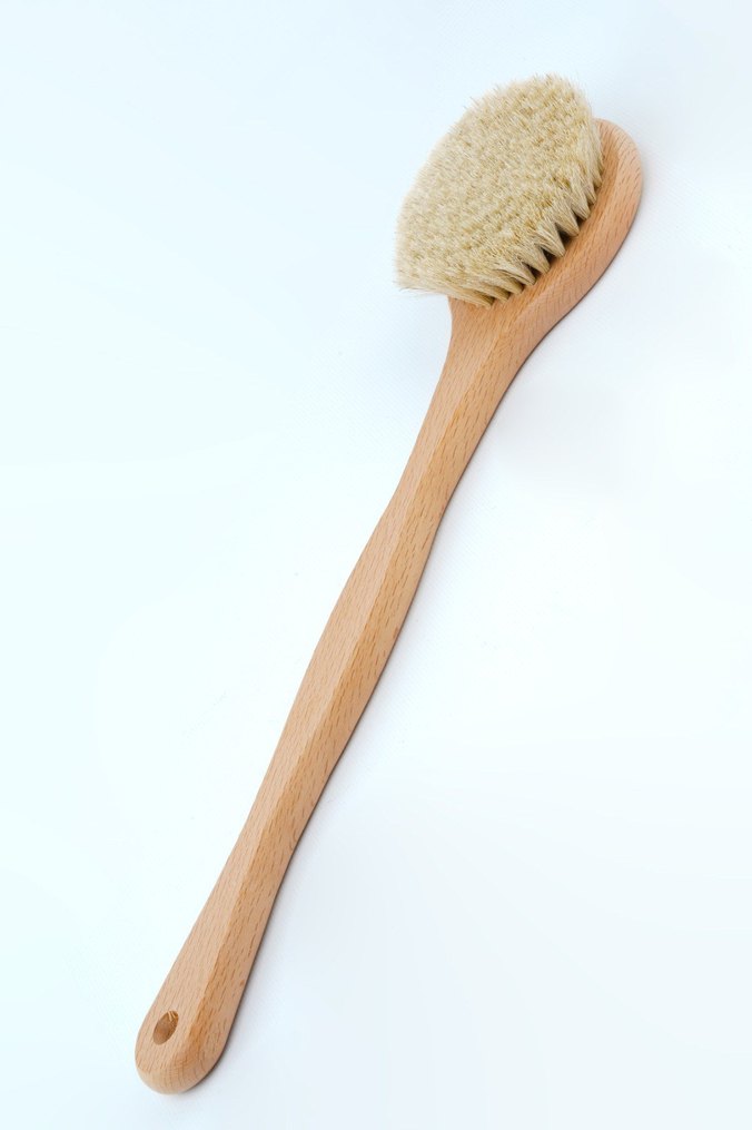 doğal at kılı ve verniksiz doğal ahşaptan , duş fırçasi 40cm.