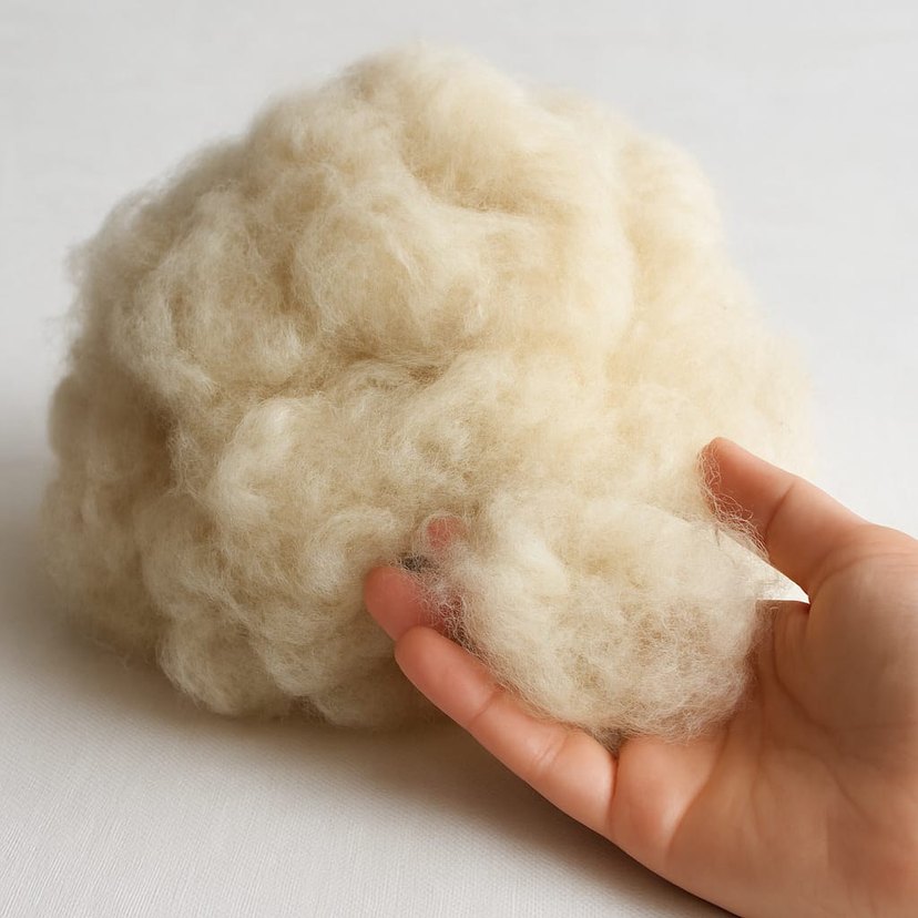 %100 doğal koyun yünü. ✔️ Özenle yıkanmış, taranmış ve temizlenmiş. ✔️ El örgüsü, keçeleme, yorgan/yastık dolgusu, oyuncak yapımı ve çeşitli el işlerinde kullanıma uygundur. ✔️ Kimyasal madde içermez. Yumuşak dokusu ve doğal yapısıyla hem sağlıklı hem de uzun ömürlüdür. Talebe göre kilo ile satış yapılır. Kg fiyatıdır