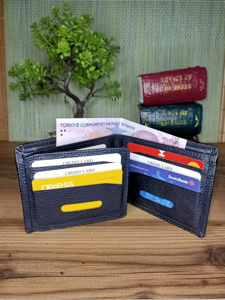 Siyah renkli, desenli ve çoklu kart ile nakit bölmeleri bulunan iş cüzdanı. Elimizde son kalan %100 gerçek deri ürünlerimizi maliyetine sizlere sunuyoruz Renk seçenekleri: Yeşil Siyah Kahverengi İsteğiniz rengi mesaj olarak iletmeniz gerekmektedir.